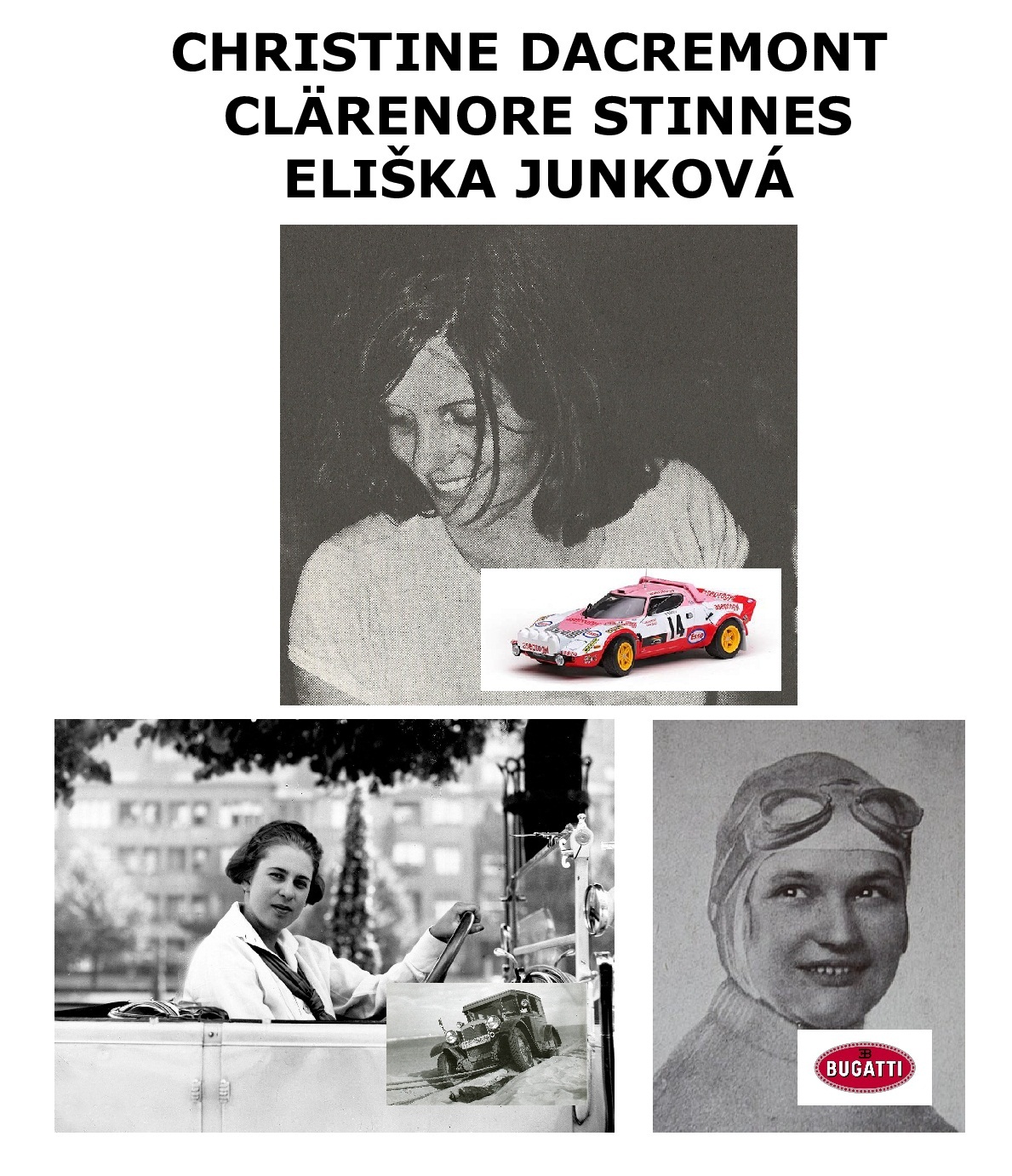 Frauen im Motorsport sind in der Historie zu wenig beachtet. Die Tschechin Eliśka Junková, die Deutsche Clärenore Stinnes und die Französin Christine Dacremont haben in ihrem Leben außergewöhnliche Leistungen vollbracht. Mut, Ausdauer und Erfolge dieser Frauen sind einer Erinnerung mehr als würdig und für eine junge, heranwachsende Generation vorbildlich und inspirierend. Das Team der Theater- und Kulturgruppe KUNST UND DRAMA präsentiert nun unter dem Titel „Trilogie der rasanten Frauen - Legendäre Frauen im Motorsport“ Ausschnitte aus dem Leben dieser drei Motorsportlerinnen.