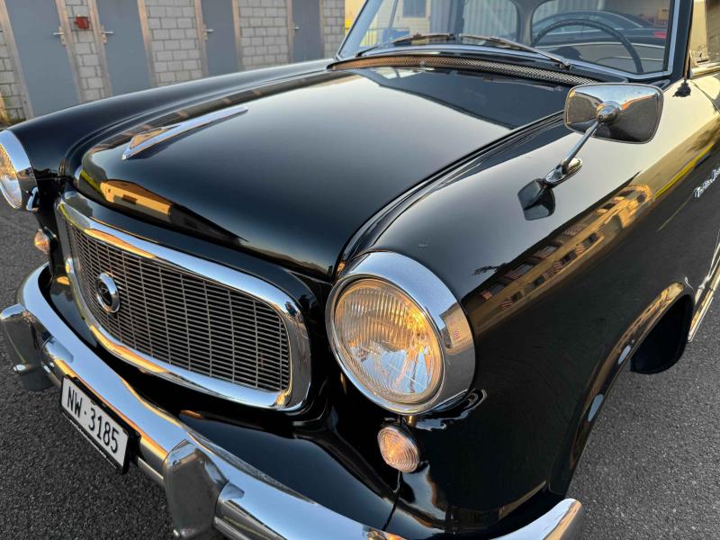 Das hier angebotene Fahrzeug stammt aus dem ersten Baujahr dieser Neuauflage und wurde wohl – wie die Stammnummer im Fahrzeugausweis vermuten lässt – als Neuwagen in die Schweiz importiert. Die frühen Jahre des Fahrzeugs sind nicht dokumentiert. Ab 1990, mit angezeigten 95‘853 Km, war der Rambler im Besitz eines Liebhabers, welcher ein Fahrtenbuch führte und während 4 Jahren lediglich 2‘000 Km zurücklegte. Im Frühjahr 1996 wurde das Fahrzeug vom Vater der letzten Besitzerin übernommen. Auch dieser, selbst Mechaniker, pflegte das Fahrzeug und führte ein ausführliches Wartungsheft. So wurden 2007 (vor rund 1‘500 Km) der Kühler revidiert und die Wasserpumpe ersetzt, 2010 erhielt das Fahrzeug eine Umrüstung auf DOT5 Silikon-Bremsflüssigkeit und 2016 wurde die vordere Sitzbank neu bezogen. Aktuell hat das Fahrzeug vermutlich erst 105‘500 Kilometer gefahren und befindet sich in gutem und sehr originalem Allgemeinzustand. Die letzte MFK als Veteranenfahrzeug war im September 2024. Weitere Fotos auf www.riverside-classics.ch. Eine Besichtigung und Probefahrt ist nach Vereinbarung gerne möglich (Fahrzeug steht in einem Aussenlager).