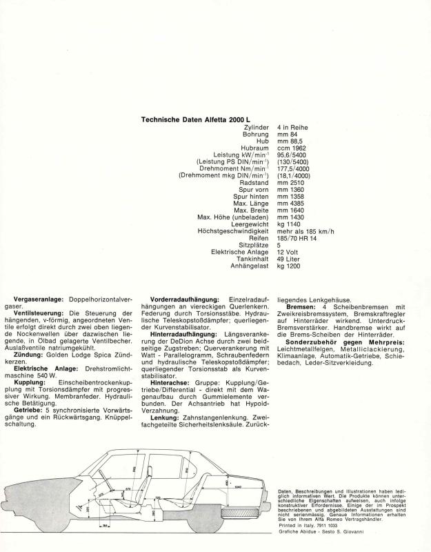 Alfa Romeo Alfetta 200 L Prospekt 1978
