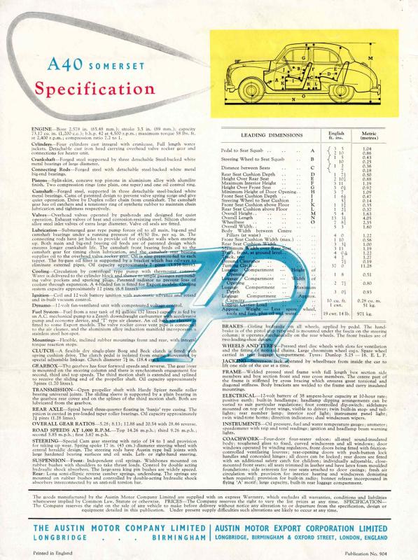 Austin A 40 Somerset Prospekt 1952
