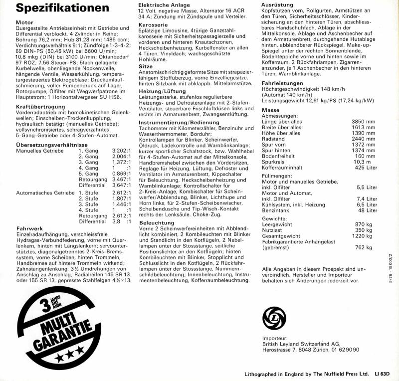 Austin Allegro 2 1500 Prospekt 1976