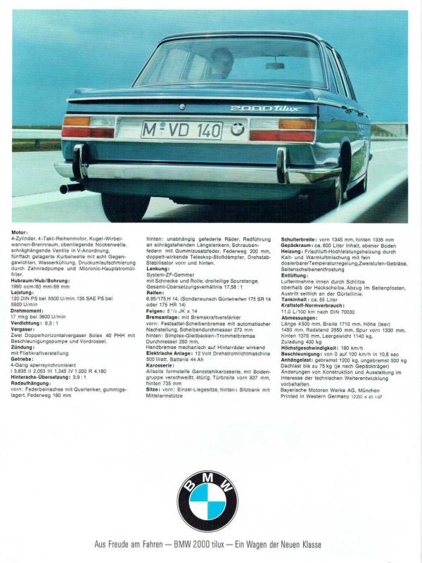 BMW 2000 tilux Prospekt 1967
