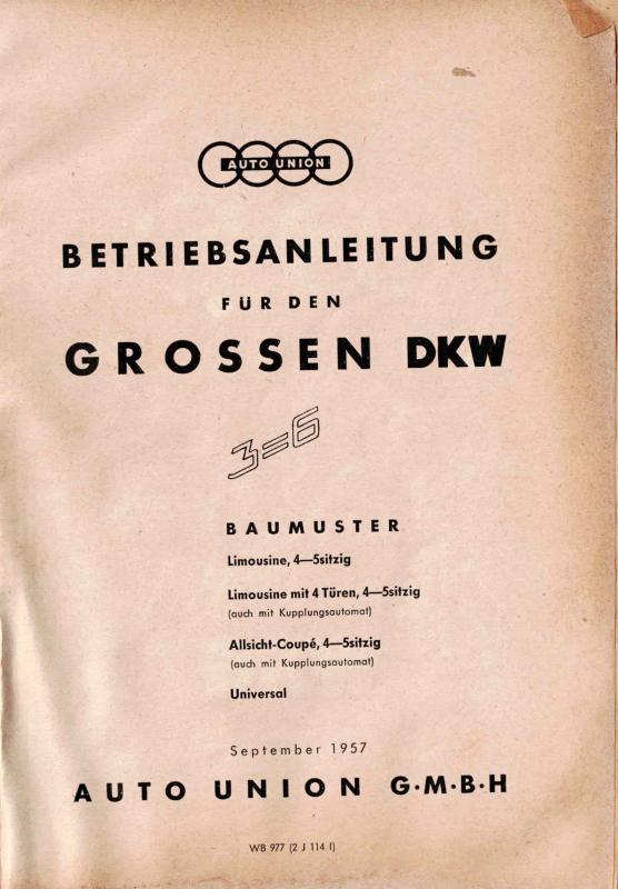 Betriebsanleitung für den grossen DKW 3=6