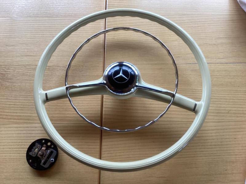 Biete hier ein komplettesLenkrad wie auf den Bilder, passend für einen 190sl an. Sehr schönes Stück.
