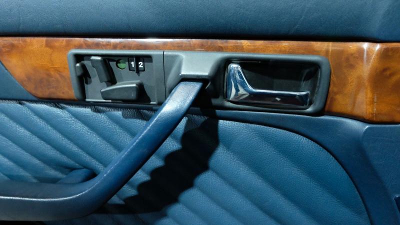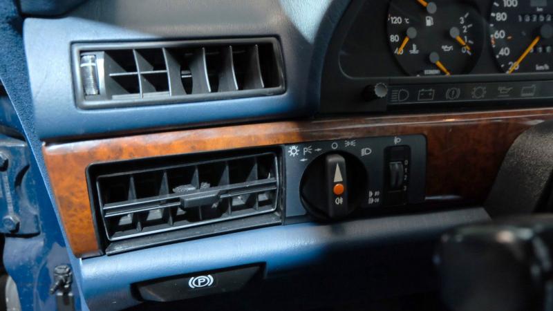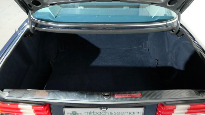 Dieser äußerst gepflegte deutsche Youngtimer präsentiert sich dem Tachostand entsprechend in einem hervorragenden Zustand. Die Holzarbeiten im Interieur sind sehr gut erhalten, das Leder ist einwandfrei und nach wie vor weich und äußerst komfortabel.