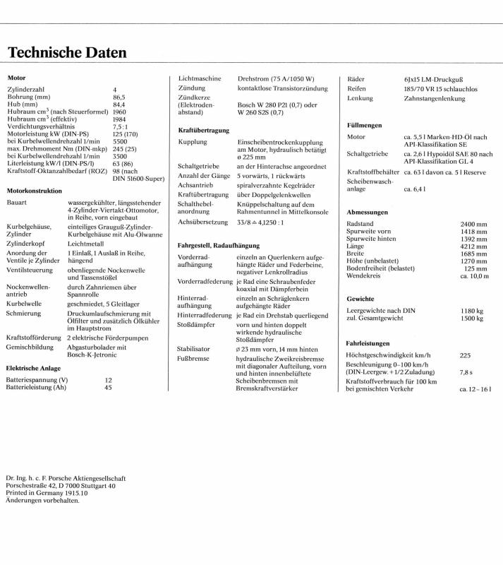 Porsche Prospekt 1985