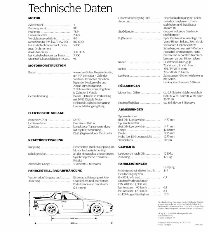 Porsche 944 Turbo Prospekt 1985
