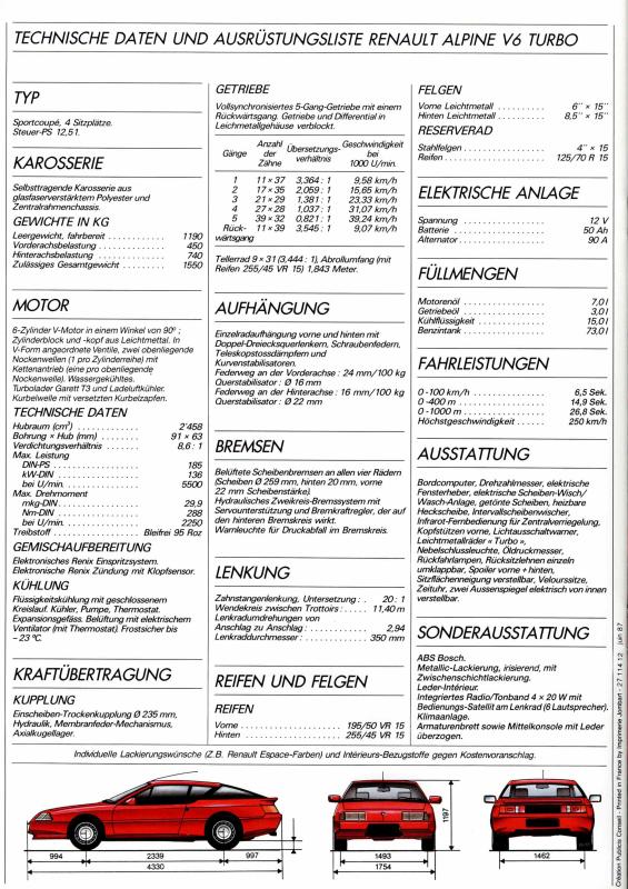 Renault Alpine Prospekt 1987
