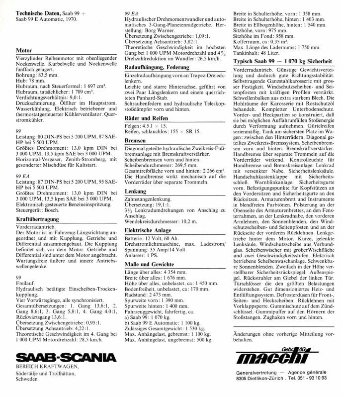 Saab 99 Prospekt 1970