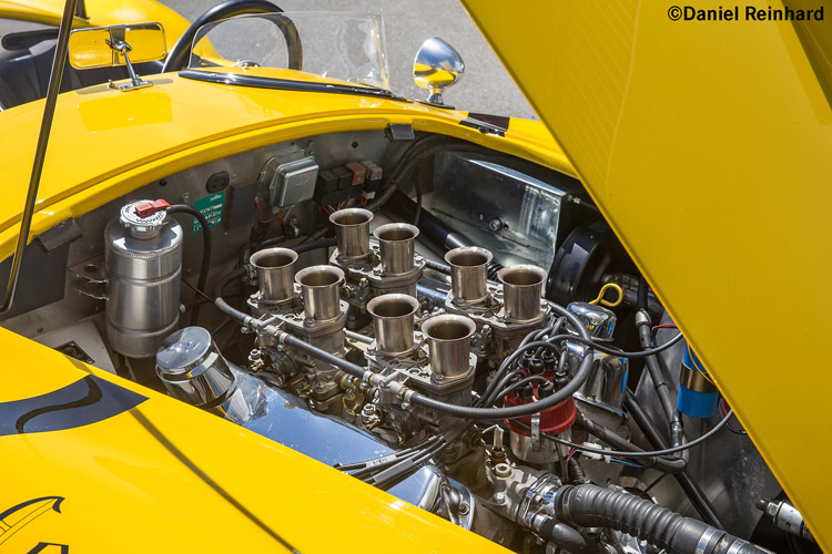 Ein hervorragender Nachbau von Allan Grant’s Coventry Motors Renn-Cobra. Das Fahrzeug wurde aufwändig mittels einer Kirkham Aluminium-Karosserie und einem Rohrrahmen-Chassis mit einstellbarem Rennfahrwerk aufgebaut. Als Antrieb dient ein Ford 347 cui V8 Stroker Motor mit vier Weber Doppelvergasern und ca. 400 PS, gekoppelt an ein 5-Gang Getriebe mit kürzlich ersetzter Rennkupplung. Mit einem Leergewicht von nur 880 kg ist diese Giftschlange definitv ein schnelles und brutales Fahrzeug in hervorragendem Zustand. Die Cobra wird mit UK-Papieren und Schweizer Verzollung angeboten. Versichern Sie sich bitte, dass die Vorderräder geradeaus zeigen bevor Sie Gas geben!