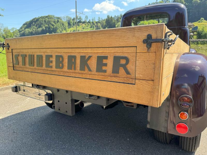 Im Kundenauftrag verkauft wird ein komplett und sehr aufwändig restaurierter 1947 Studebaker M15A-28 1-ton-Pickup in Sammlerzustand. Der verbaute Reihensechszylinder-Motor leistet 80 PS. Der Studebaker ist mit einem nicht-synchronisierten 4-Gang-Getriebe ausgestattet und daher nur etwas für geübte Fahrer. Vom hier angebotenen Fahrzeug (mit der S/N 19092) wurden 1947 nur rund 6'700 Stück hergestellt und die wenigsten haben überlebt, es ist daher praktisch kaum mehr auf unseren Strassen zu sehen.