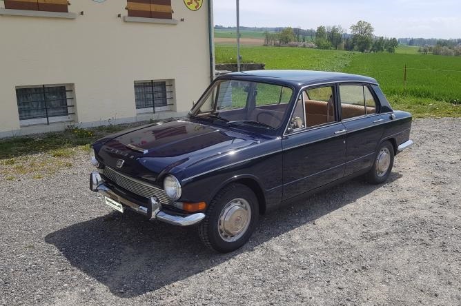 wurde 1969 zugelassen und nur selten gefahren, 2001 dann abgemeldet. Ein wirklich originales Fahrzeug aus langjährigem Familienbesitz. Der Wagen ist gut gewartet und unverbastelt mit Serviceheft. Der Triumph 1300 fährt sich leicht und sehr komfortabel, die Geräuschdämpfung ist prima. Die Schaltung und Lenkung funktionieren präzise. Das Armaturenbrett ist aus Echtholz, die Instrumentierung schön angerichtet, die Übersichtlichkeit vorbildlich. Er vermittelt viel Fahrspass und bietet bei Bedarf auch genügend Platz für weitere Personen und Gepäck. Äusserst seltenes Fahrzeug mit viel Charakter!