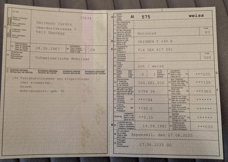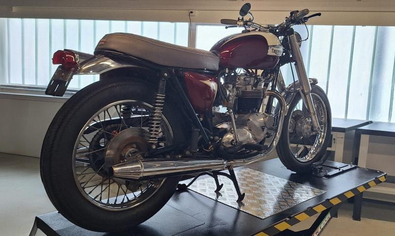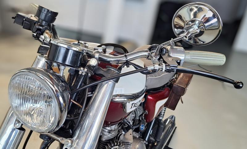Kernige 750er Triumph Bonneville frisch aufgebaut und vorgeführt im Juni 2025. Mit Oldtimer "Firestone Bereifung". Eine reine mechanische Maschine mit schöner Patina, gepflegt aber mit entsprechenden Gebrauchspuren. Genau das richtige Gadet für Individualisten und für Liebhaber britischer Motorräder um in den nahenden Frühling zu starten.