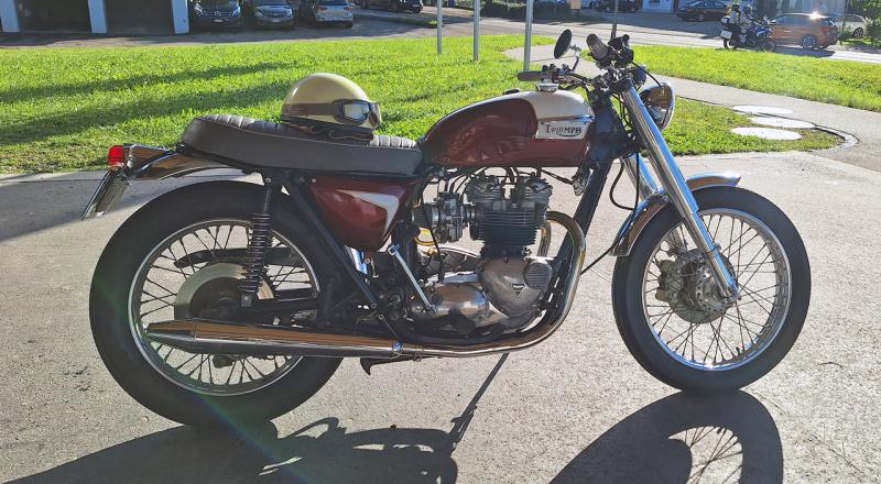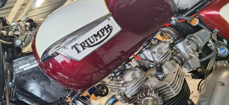 Die Bonnie wurde über den Winter durch versierten Motorradmechaniker fachmännisch gewartet, technisch überholt und ist fahrbereit.
