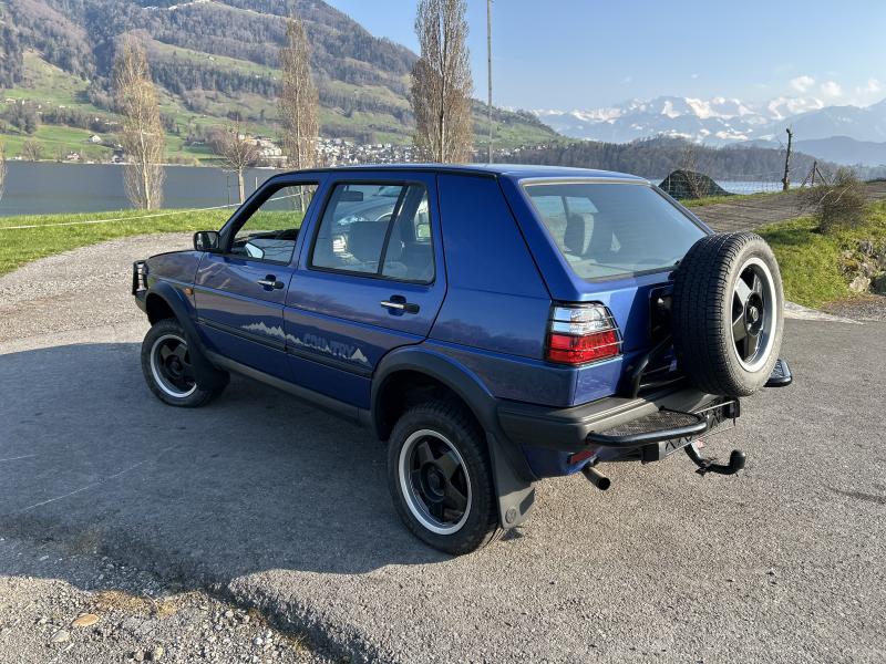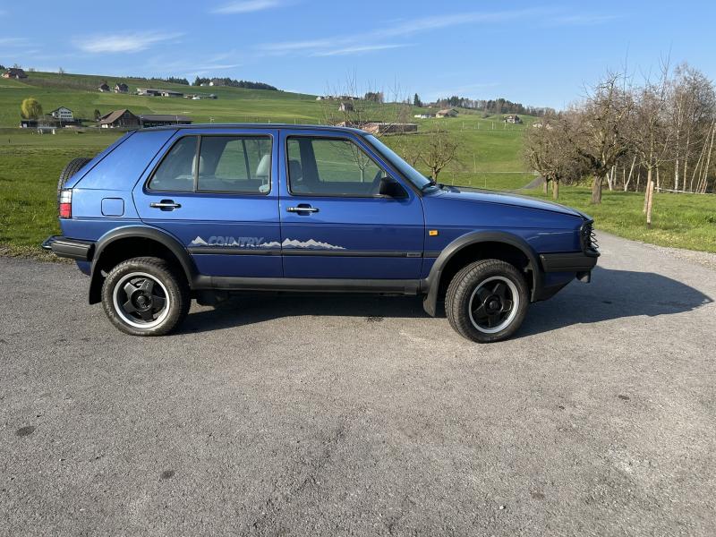 Der hochbeinige und durch einiges Karosseriezubehör auffällige Golf Country wurde auf dem Genfer Salon 1989 gezeigt und zunächst als Studie deklariert, kam aber 1990 ins Programm. Er hatte permanenten Allradantrieb über Visco-Kupplung, ein modifiziertes Fahrwerk mit neuen Federbeinen und neuer Feder-Dämpfer Abstimmung. Zwischen Achsen und Karosserie waren rahmenartige Distanzstücke montiert, die Bodenfreiheit betrug 180mm, das waren 60mm mehr als der normale Golf bot. Das Reserverad sass an einem Bügel auf dem Fahrzeugheck, vor dem Kühler wies der Wagen ein Gitter auf, das auch die Scheinwerfer einfasste. Der Country konnte Böschungswinkel bis zu 25 Grad erklimmen.