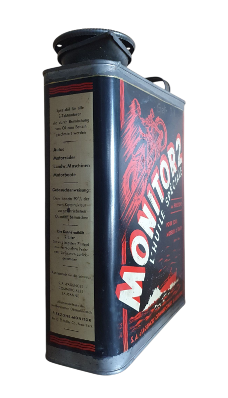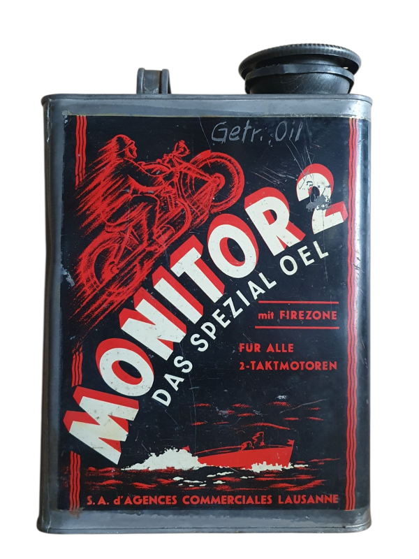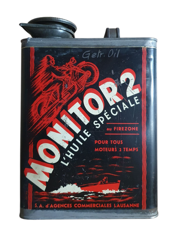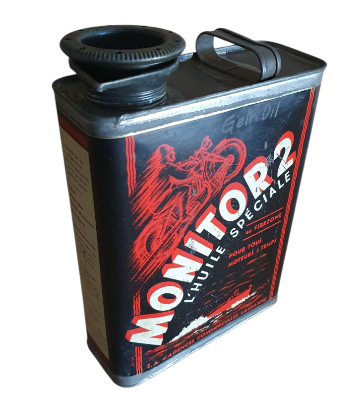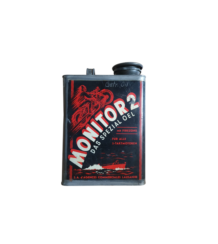 seltene Oeldose mit Motorradmotiv